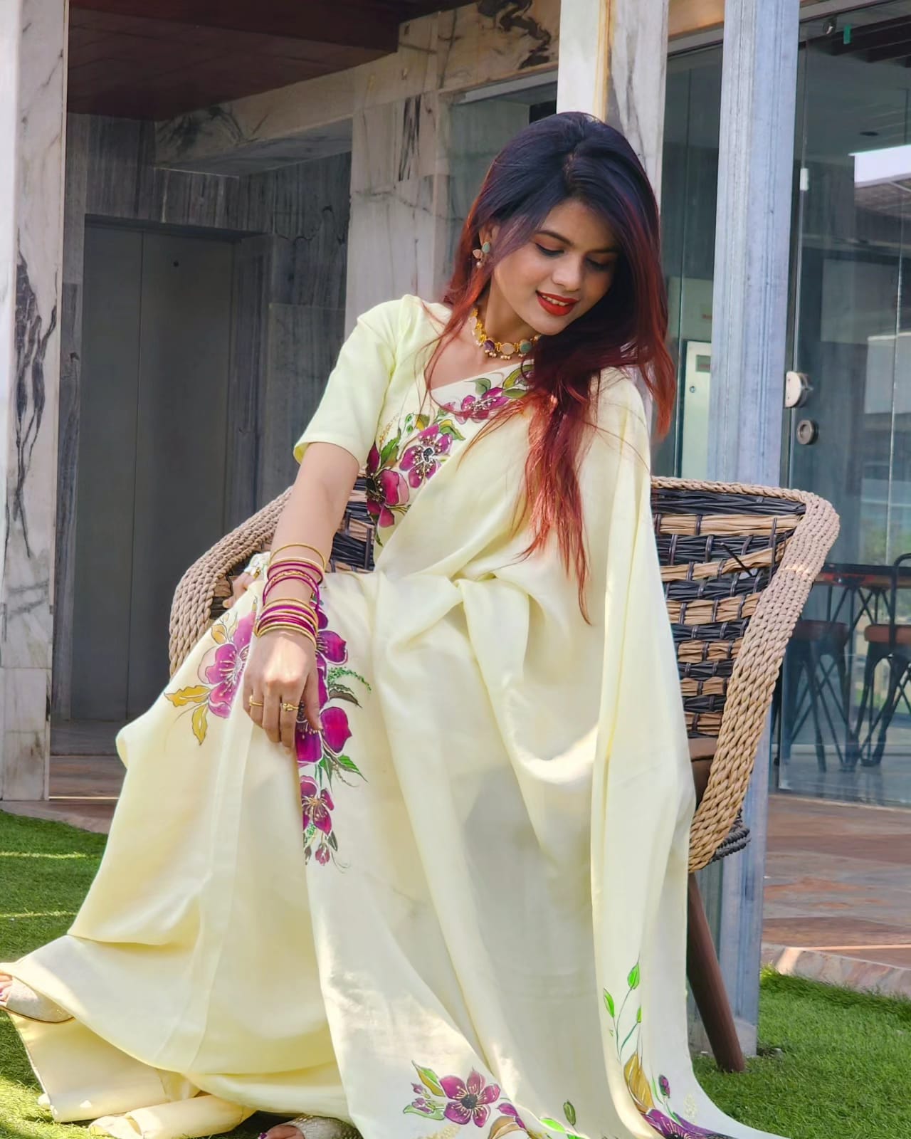 Plum Blossom Lemon Yellow Pure Silk Saree
